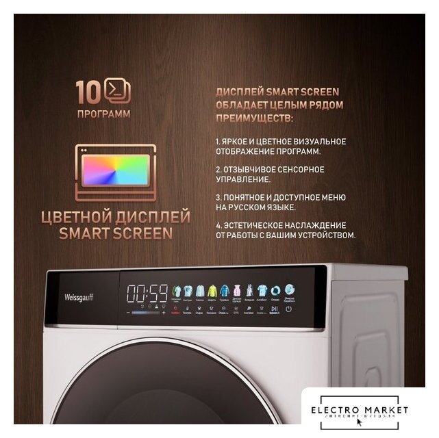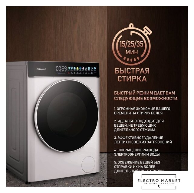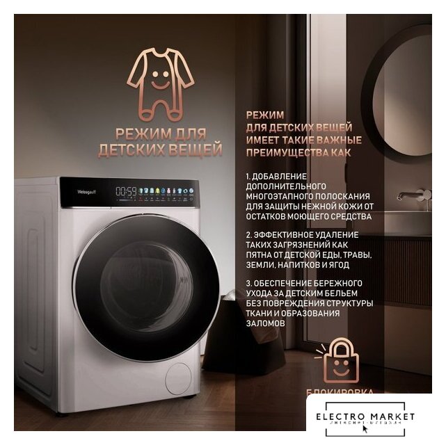 | Все программы | Смешанные ткани, Быстрая, Хлопок, Шерсть, Пуховик, Детская одежда, Холодная, Антибакт., Отжим, Очистка барабана |