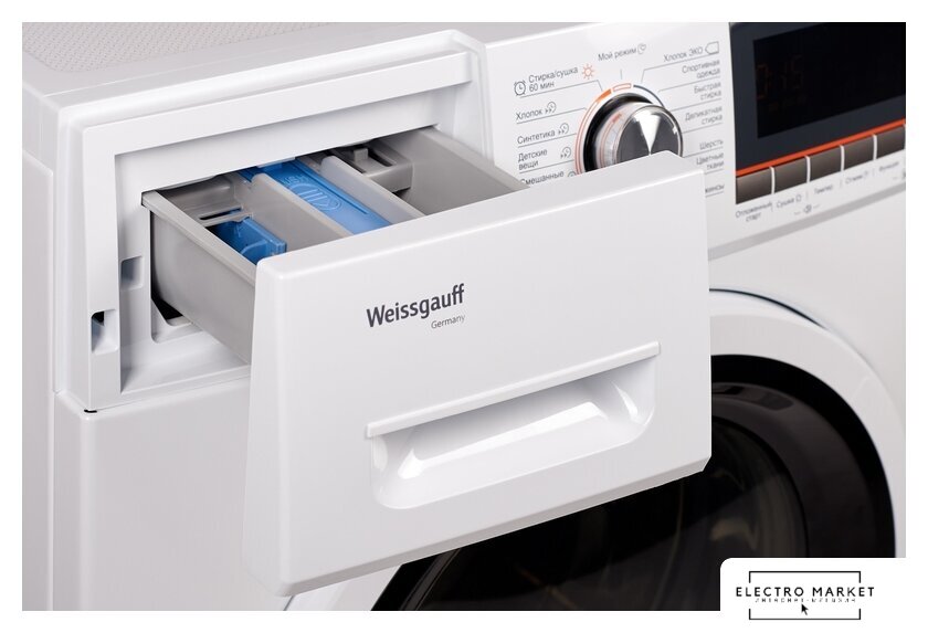 отдельностоящая, стирально-сушильная машина, с паром, загрузка до 8 кг, отжим 1200 об/мин, глубина 43 см (с люком 52 см), энергопотребление A+++, прямой привод, 11 программ
