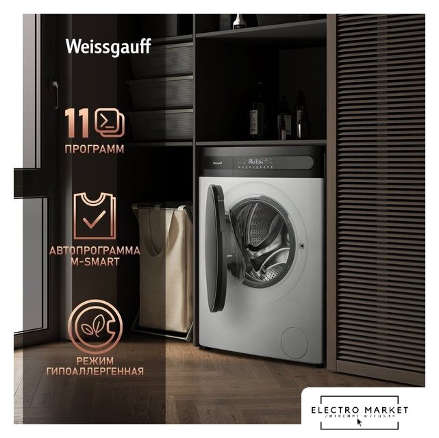 отдельностоящая, стирально-сушильная машина, загрузка до 12 кг, отжим 1200 об/мин, глубина 61 см, энергопотребление A+++, 16 программ