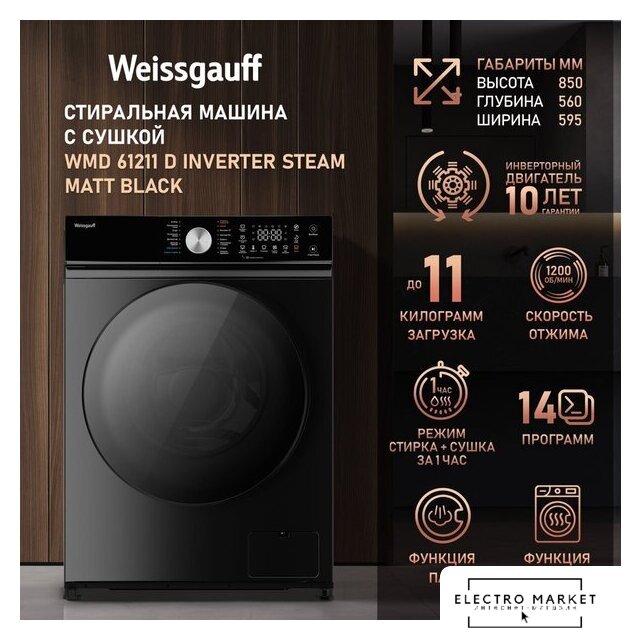 | Оригинальные функции | режим "Тихий", функция дозагрузки белья, паровая обработка |