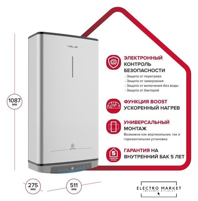 | Комплектация | - Водонагреватель, - Предохранительный клапан, - Инструкция по эксплуатации, - Гарантийный талон, - Заводская упаковка |