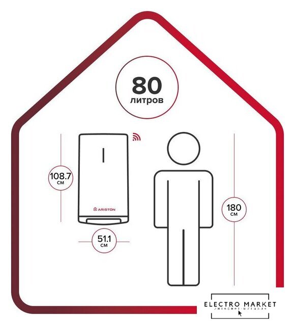универсальный/настенный, 80 л, 2 кВт, время нагрева 180 мин, сухой ТЭН, 89.5×55.5×35.5 см