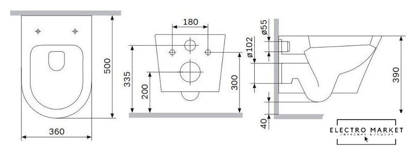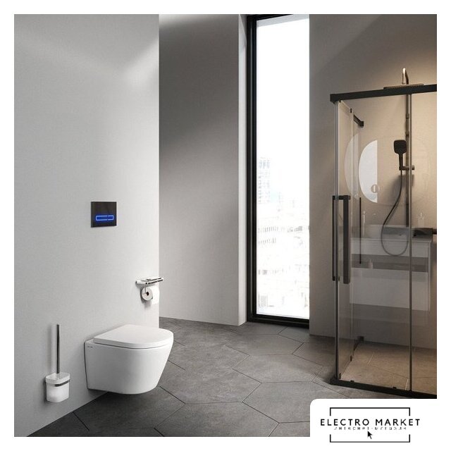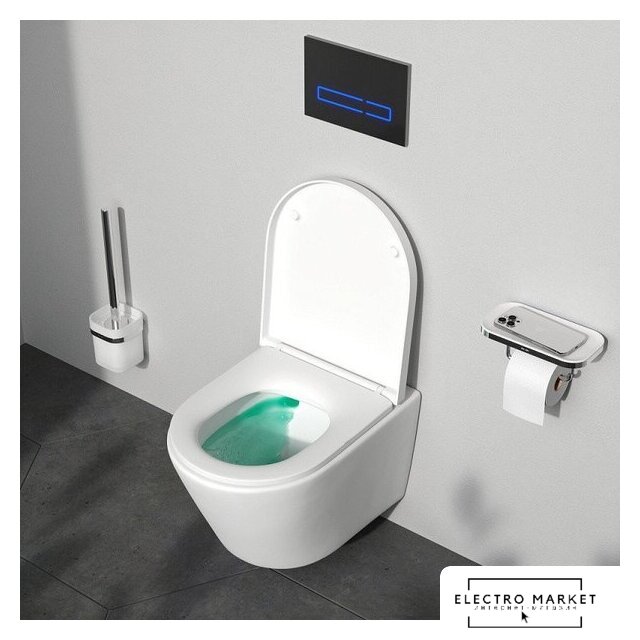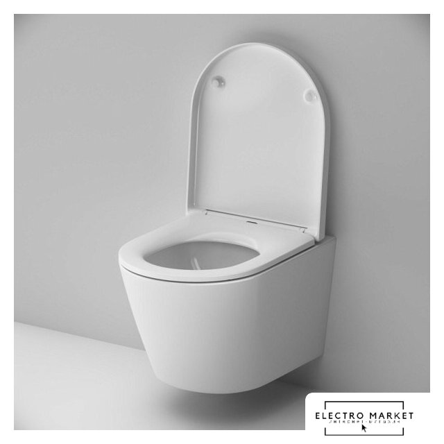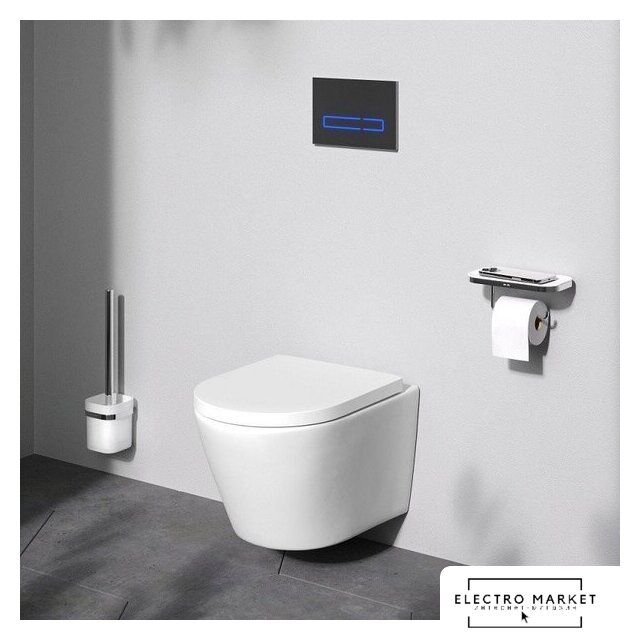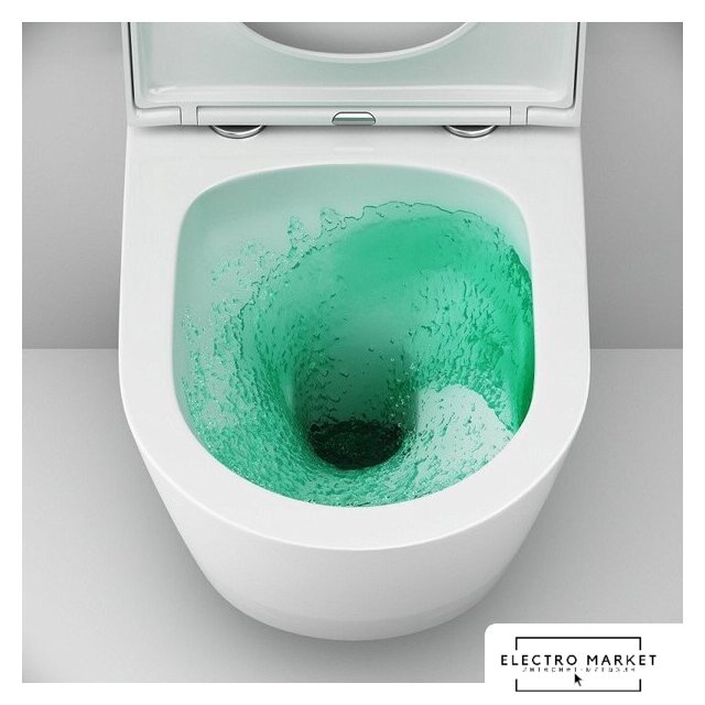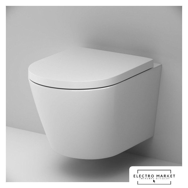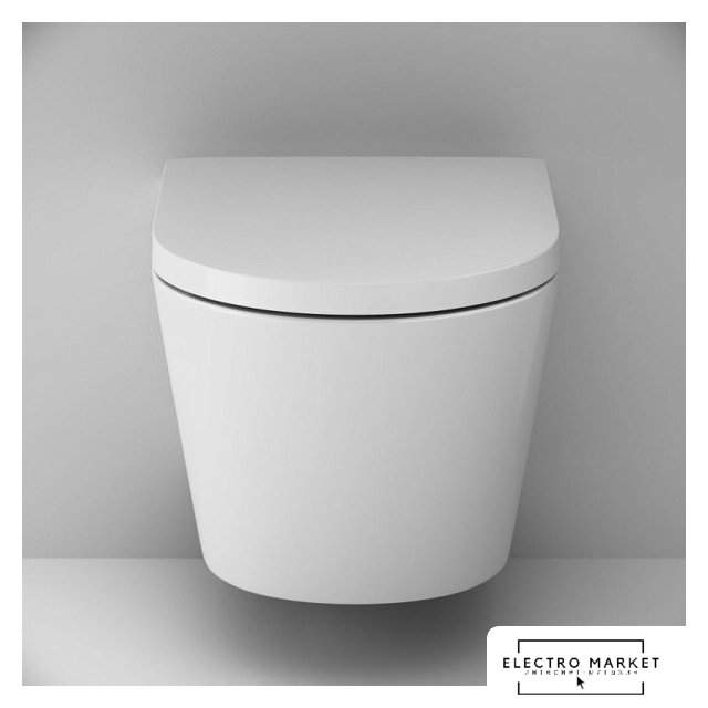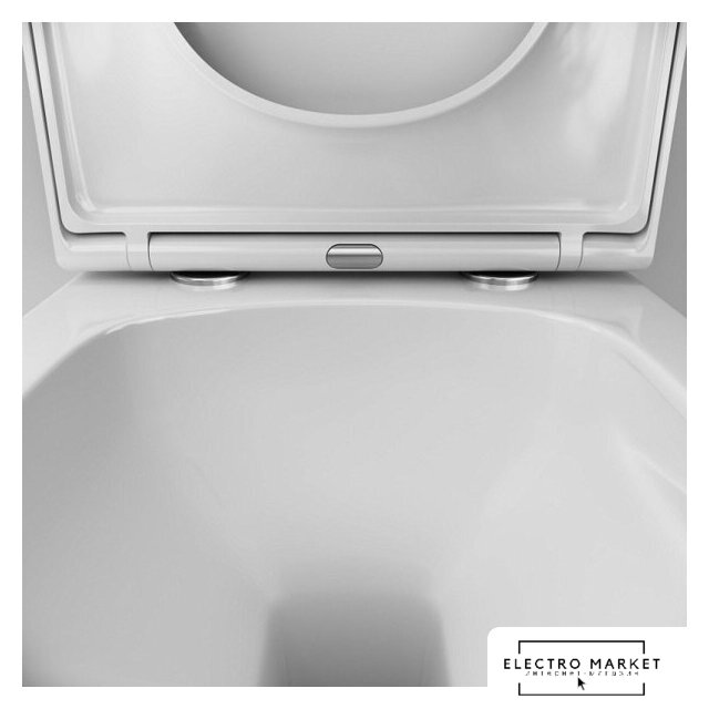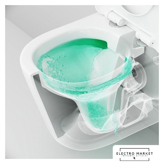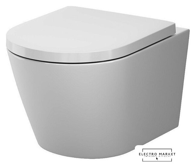 подвесной, конструкция: без бачка, задний подвод воды, горизонтальный выпуск, двухрежимный слив, с сиденьем, безободковый