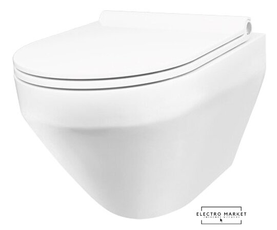 подвесной, конструкция: без бачка, задний подвод воды, горизонтальный выпуск, двухрежимный слив, с сиденьем, безободковый