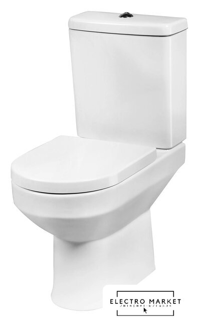 напольный, конструкция: компакт, нижний подвод воды, универсальный выпуск, двухрежимный слив, с сиденьем, безободковый