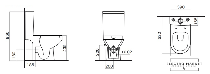 напольный, конструкция: компакт, нижний подвод воды, универсальный выпуск, двухрежимный слив, с сиденьем