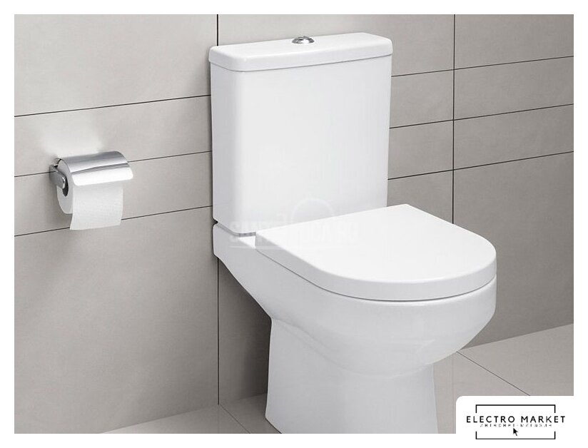 напольный, конструкция: компакт, горизонтальный выпуск, двухрежимный слив, с сиденьем, безободковый