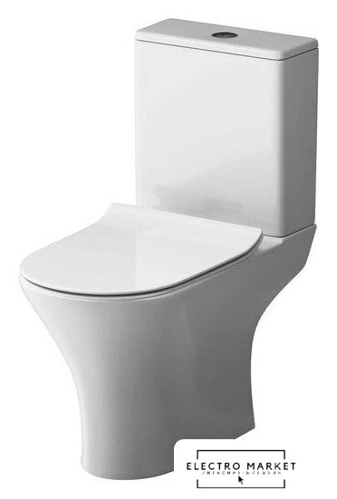 напольный, конструкция: компакт, нижний подвод воды, универсальный выпуск, двухрежимный слив, с сиденьем, безободковый