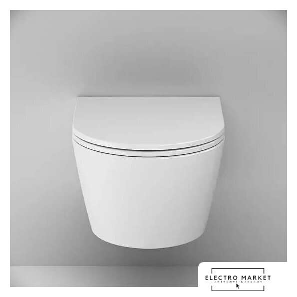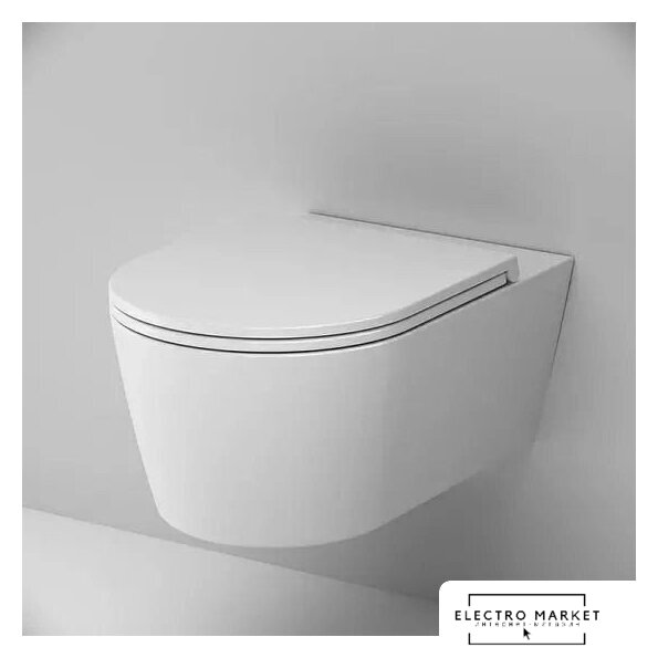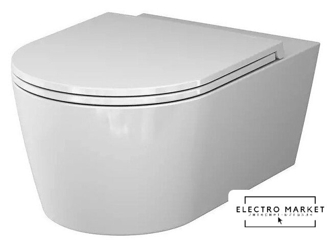 подвесной, конструкция: без бачка, задний подвод воды, горизонтальный выпуск, двухрежимный слив, с сиденьем, безободковый
