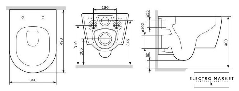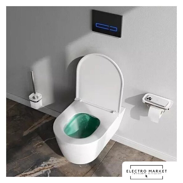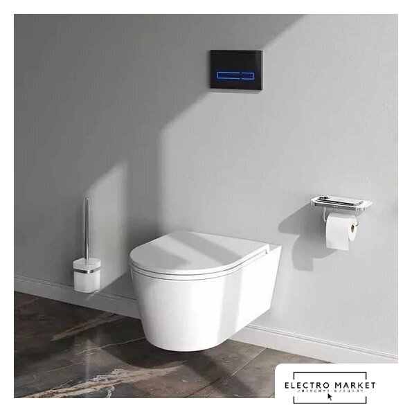 подвесной, конструкция: компакт, задний подвод воды, горизонтальный выпуск, двухрежимный слив, с сиденьем, безободковый