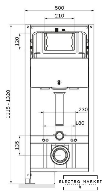 | Отверстия под инсталляцию | 180 мм |