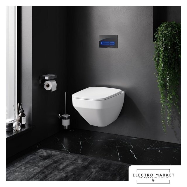 умный (электронный) унитаз, подвесной (с биде), конструкция: без бачка, задний подвод воды, горизонтальный выпуск, двухрежимный слив, с сиденьем, безободковый