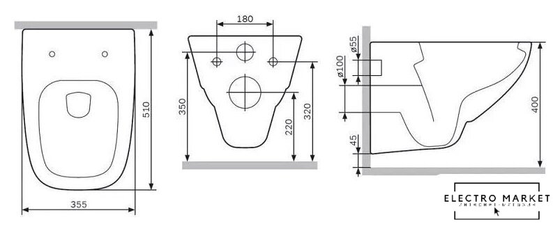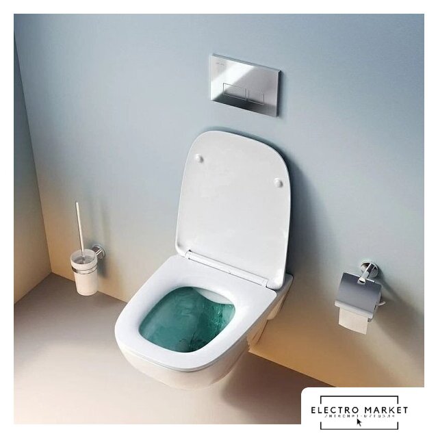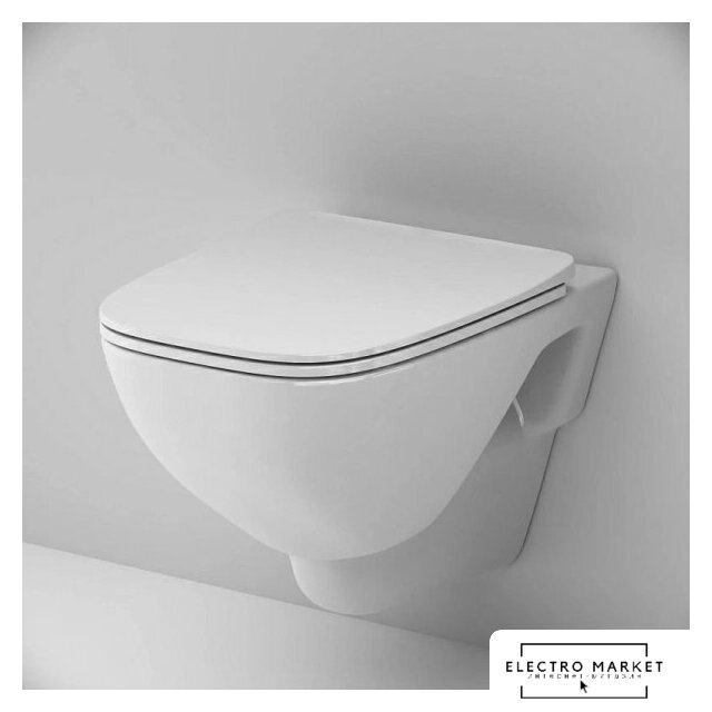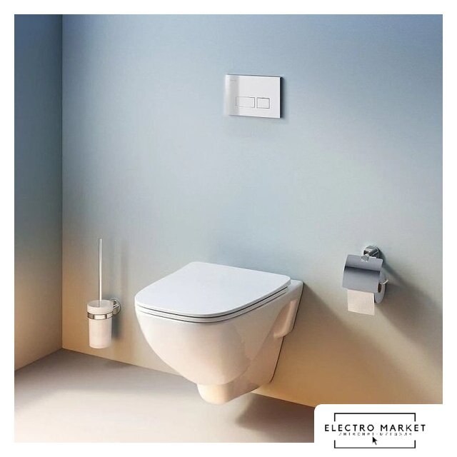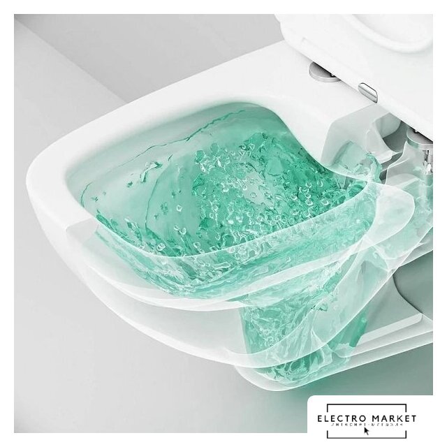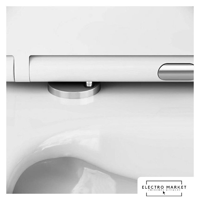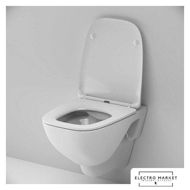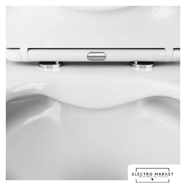 подвесной, без бачка, задний подвод воды, горизонтальный выпуск, двухрежимный слив, с сиденьем