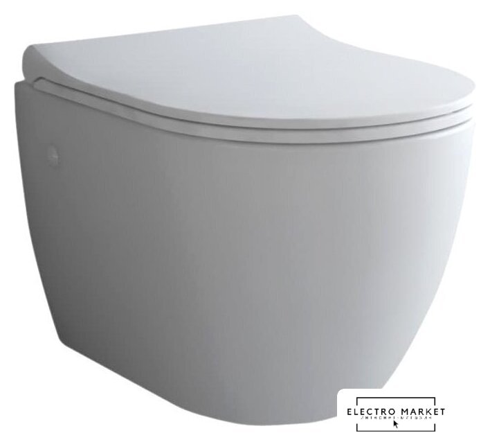 подвесной, без бачка, задний подвод воды, горизонтальный выпуск, двухрежимный слив, с сиденьем