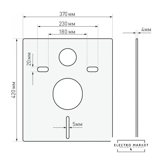| Отверстия под инсталляцию | 180 мм |