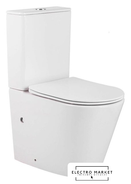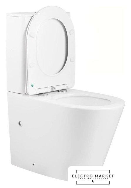 напольный, конструкция: компакт, нижний подвод воды, универсальный выпуск, двухрежимный слив, с сиденьем, безободковый
