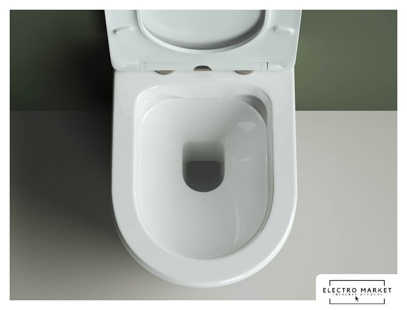 подвесной (с биде), конструкция: без бачка, задний подвод воды, горизонтальный выпуск, двухрежимный слив, с сиденьем, безободковый