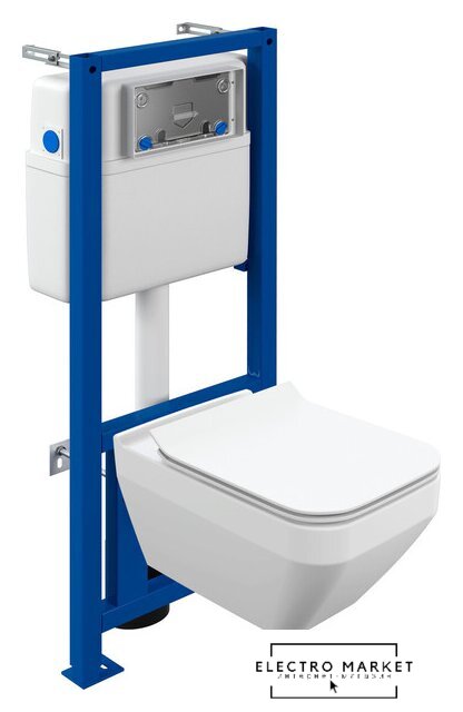 подвесной, конструкция: компакт, задний подвод воды, горизонтальный выпуск, двухрежимный слив, с сиденьем, безободковый