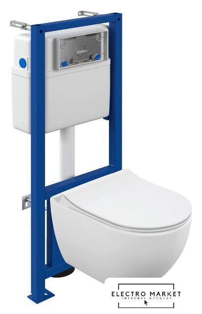 подвесной, конструкция: без бачка, задний подвод воды, горизонтальный выпуск, двухрежимный слив, с сиденьем, безободковый