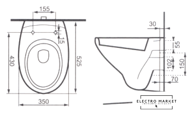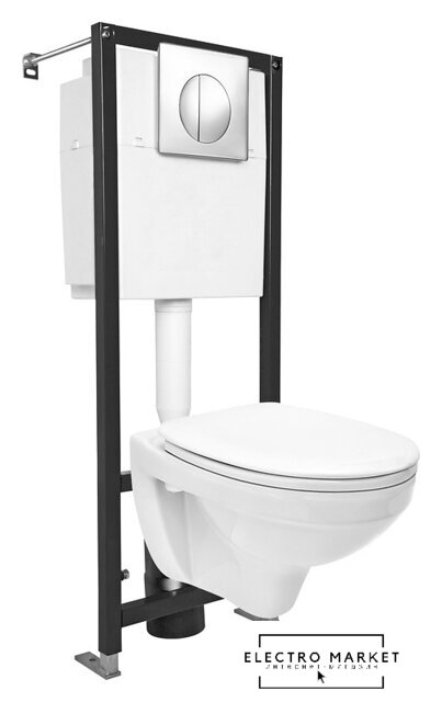 подвесной, конструкция: без бачка, задний подвод воды, горизонтальный выпуск, двухрежимный слив, с сиденьем, безободковый