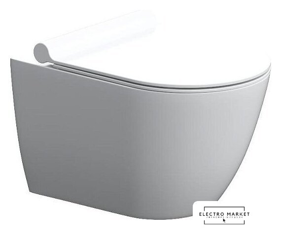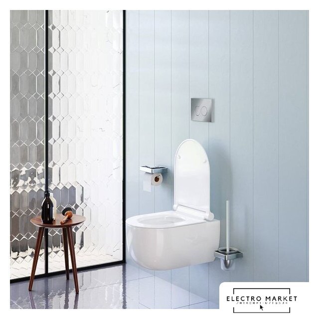 подвесной, конструкция: без бачка, задний подвод воды, горизонтальный выпуск, двухрежимный слив, с сиденьем, безободковый