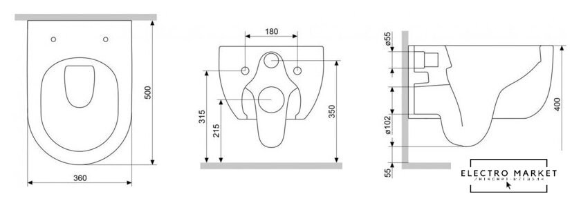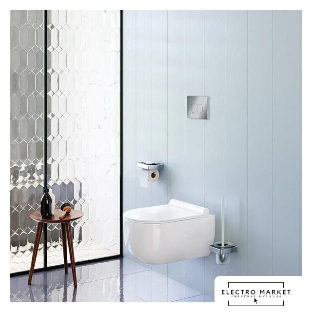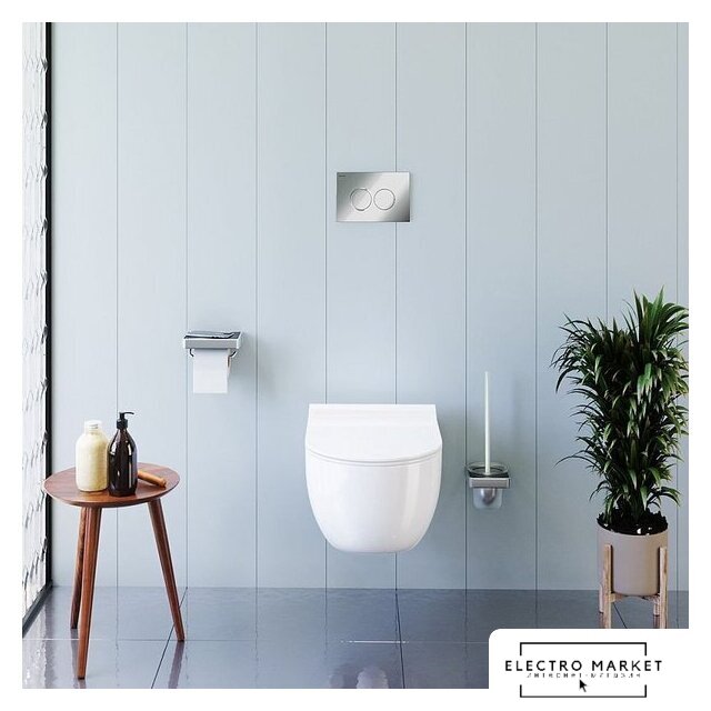 подвесной, конструкция: компакт, задний подвод воды, горизонтальный выпуск, двухрежимный слив, с сиденьем