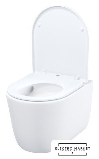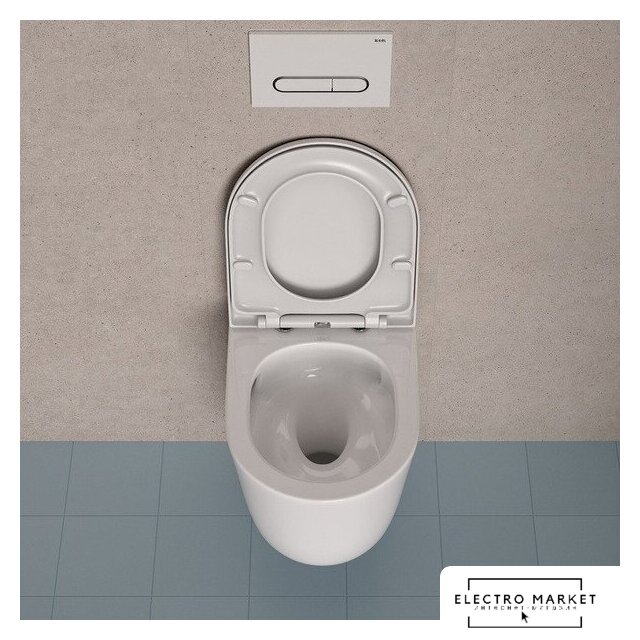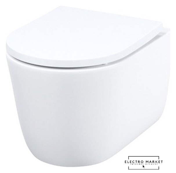 подвесной, конструкция: без бачка, задний подвод воды, горизонтальный выпуск, двухрежимный слив, с сиденьем, безободковый