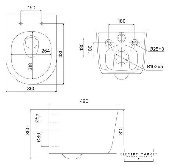 | Отверстия под инсталляцию | 180 мм |