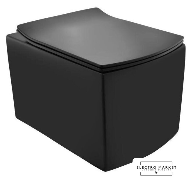 подвесной, конструкция: без бачка, задний подвод воды, горизонтальный выпуск, двухрежимный слив, с сиденьем, безободковый