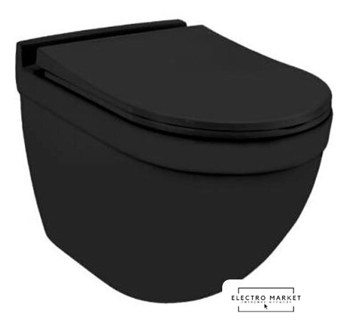 подвесной, конструкция: без бачка, задний подвод воды, горизонтальный выпуск, с сиденьем, безободковый