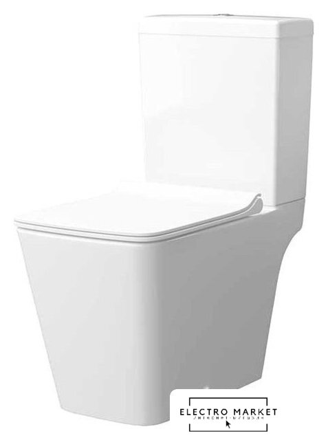 напольный, конструкция: компакт, задний подвод воды, горизонтальный выпуск, однорежимный слив, с сиденьем, безободковый
