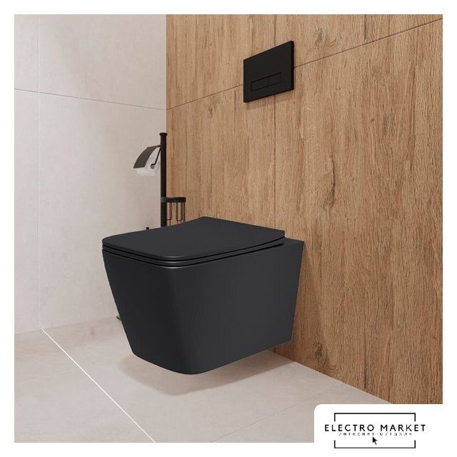 подвесной, конструкция: без бачка, задний подвод воды, горизонтальный выпуск, двухрежимный слив, с сиденьем, безободковый