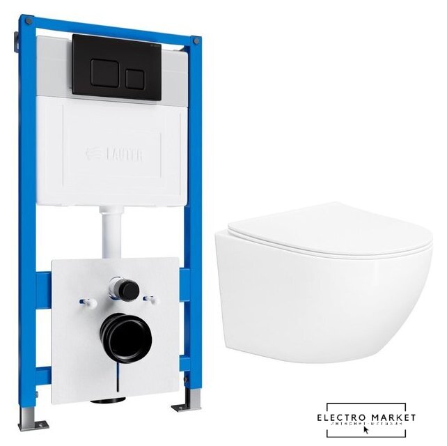 подвесной, конструкция: компакт, задний подвод воды, горизонтальный выпуск, двухрежимный слив, с сиденьем, безободковый