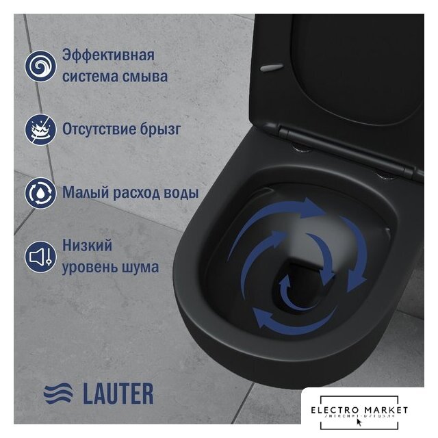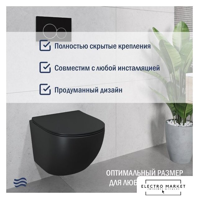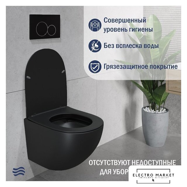 подвесной, конструкция: компакт, задний подвод воды, горизонтальный выпуск, двухрежимный слив, с сиденьем, безободковый