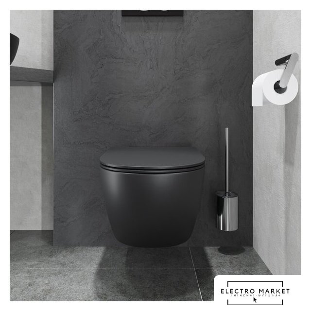 подвесной, конструкция: без бачка, задний подвод воды, горизонтальный выпуск, двухрежимный слив, с сиденьем, безободковый
