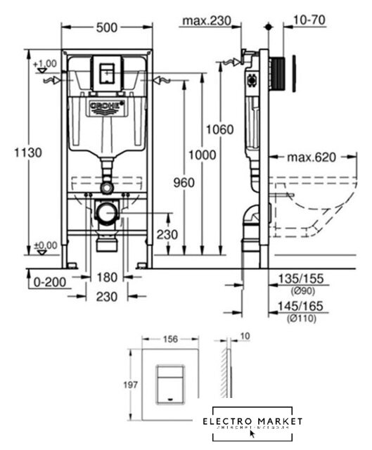 | Отверстия под инсталляцию | 230 мм |
