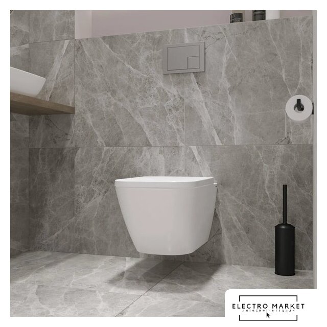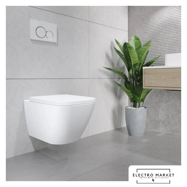 подвесной, конструкция: без бачка, задний подвод воды, горизонтальный выпуск, двухрежимный слив, с сиденьем