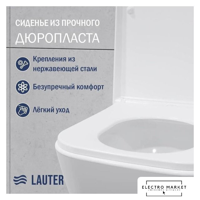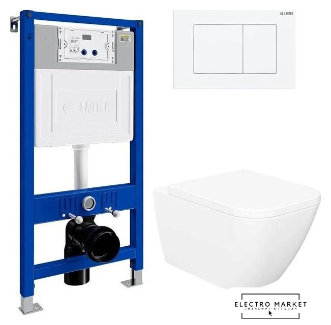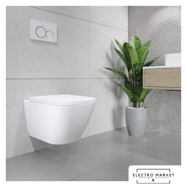 подвесной, конструкция: компакт, задний подвод воды, горизонтальный выпуск, двухрежимный слив, с сиденьем, безободковый