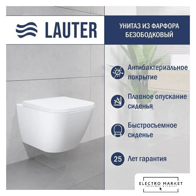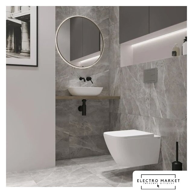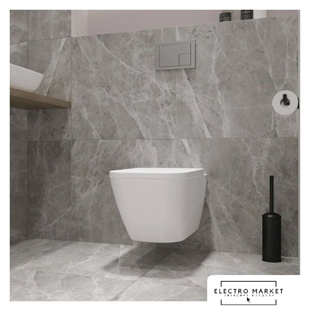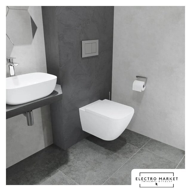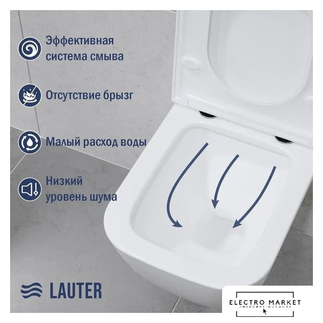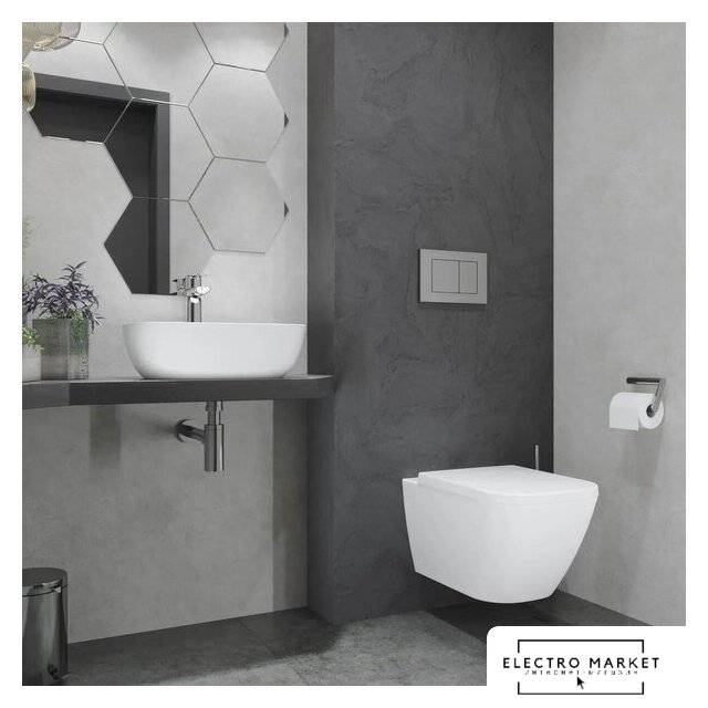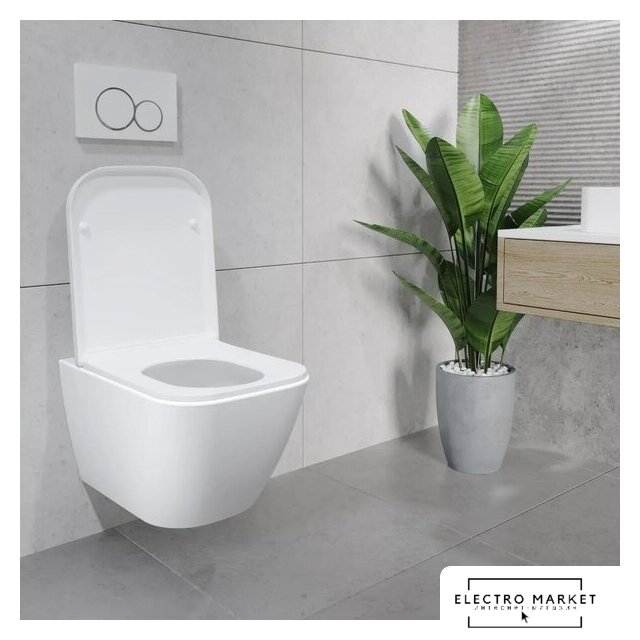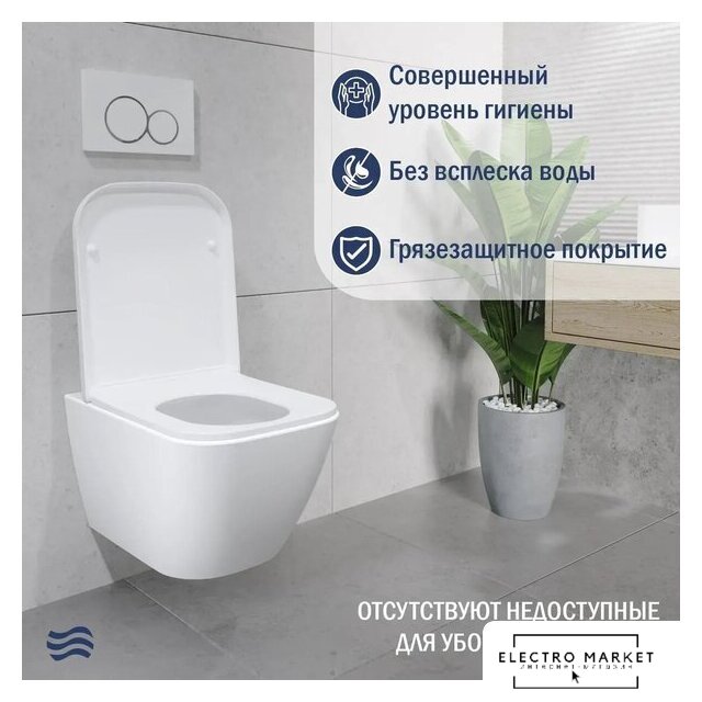 подвесной, конструкция: компакт, задний подвод воды, горизонтальный выпуск, двухрежимный слив, с сиденьем, безободковый