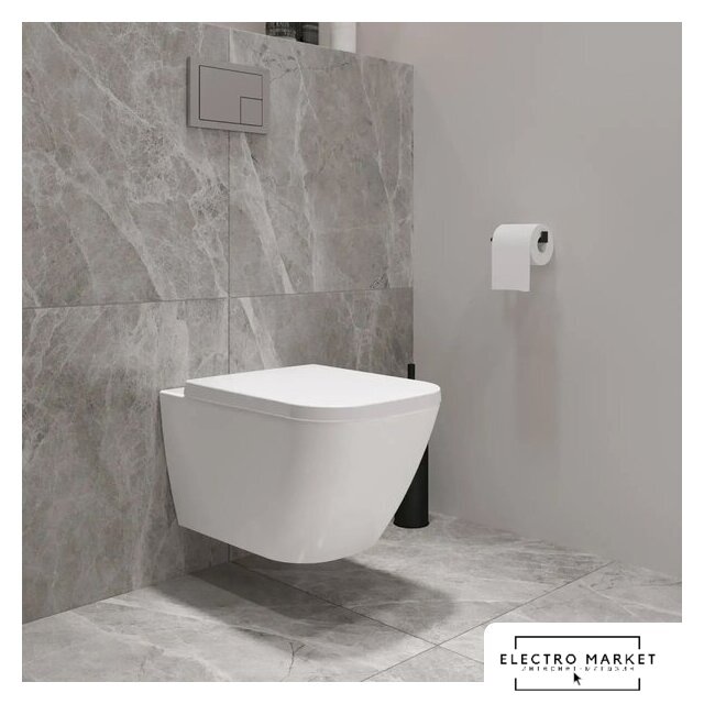 подвесной, конструкция: без бачка, задний подвод воды, горизонтальный выпуск, двухрежимный слив, с сиденьем, безободковый