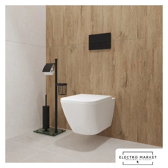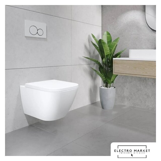 подвесной, конструкция: без бачка, задний подвод воды, горизонтальный выпуск, двухрежимный слив, с сиденьем, безободковый