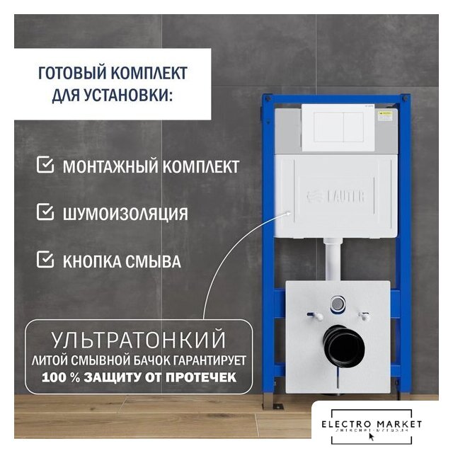 Унитазы Lauter Lauter Vortex 2110830 с кнопкой 219702J (прямоугольная, белый) Код товара: 11187086