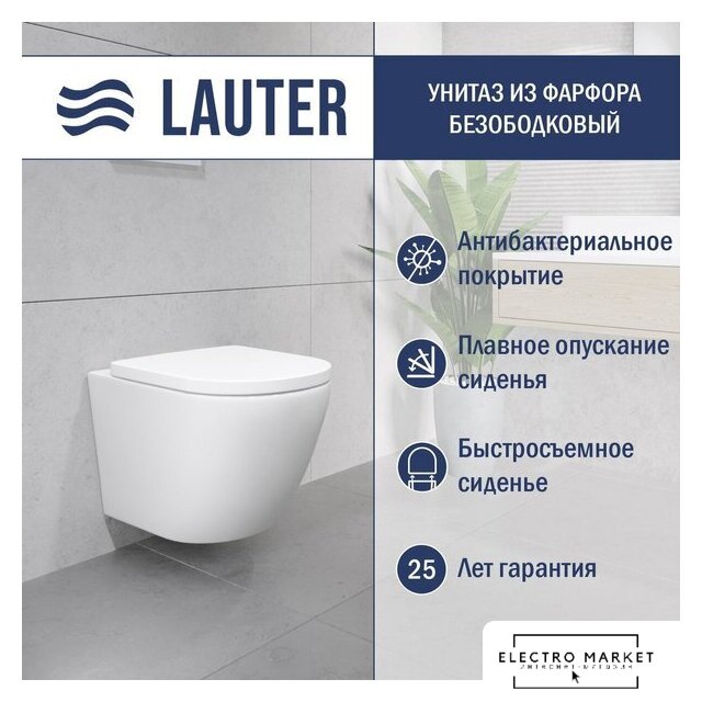 Унитаз подвесной Lauter Vortex 2110830 с кнопкой 219702J (прямоугольная, белый)