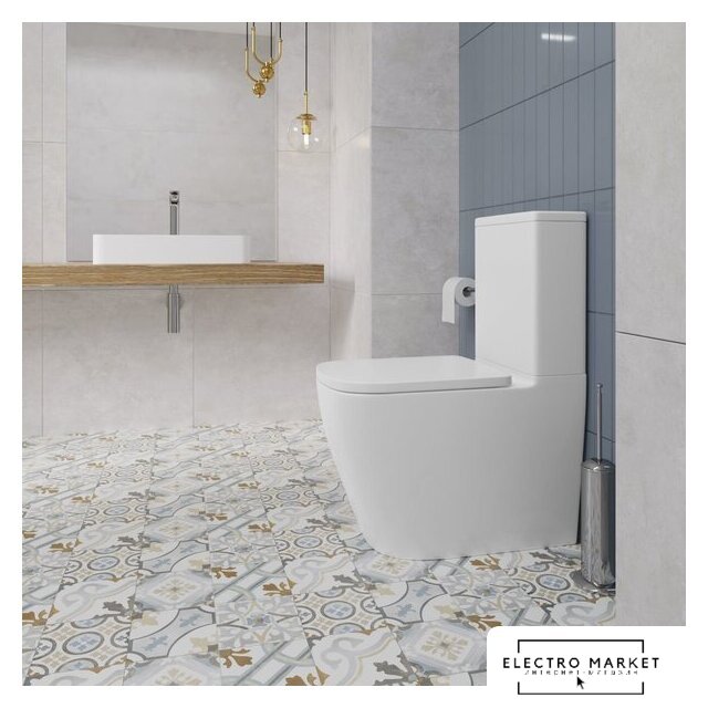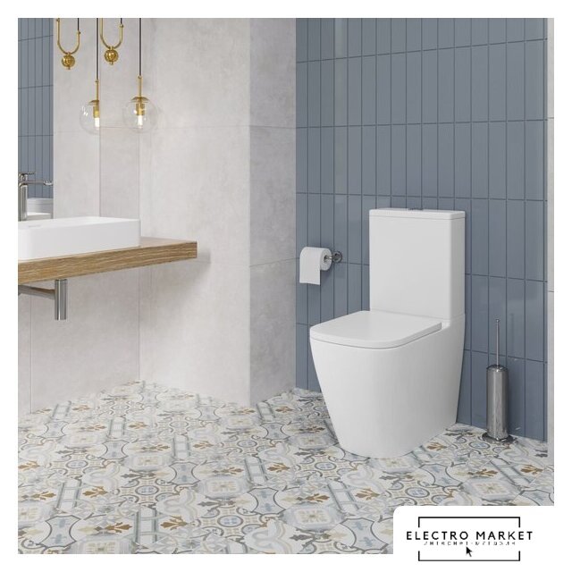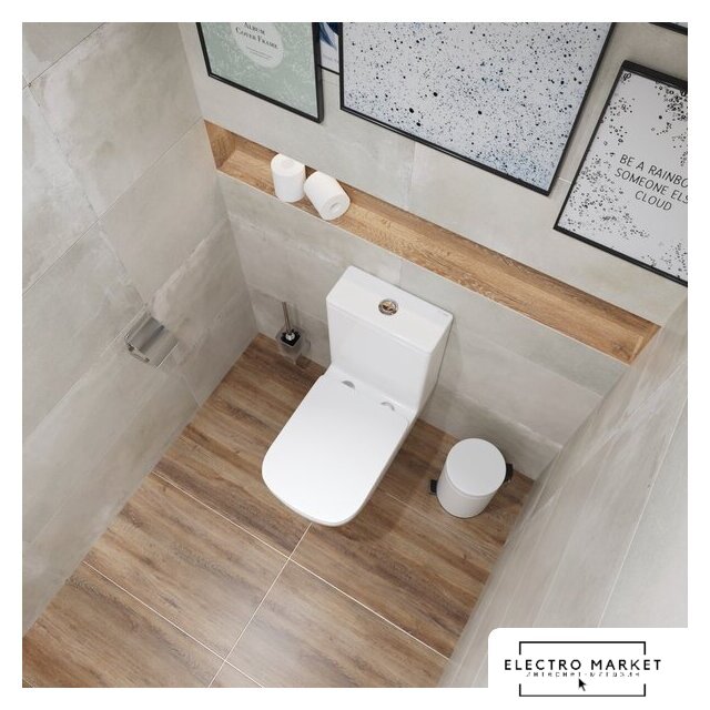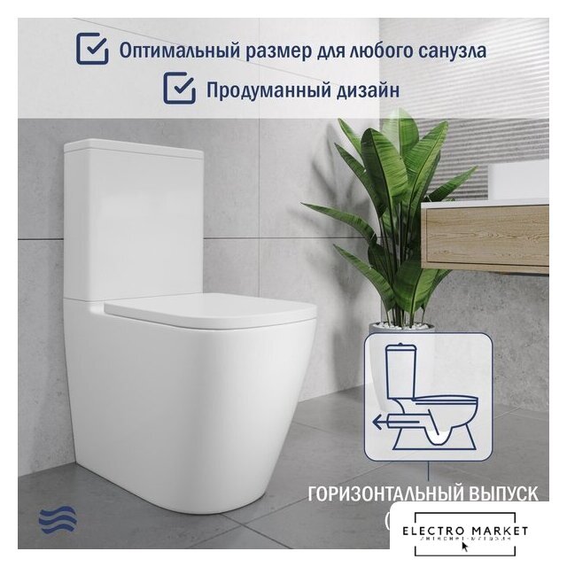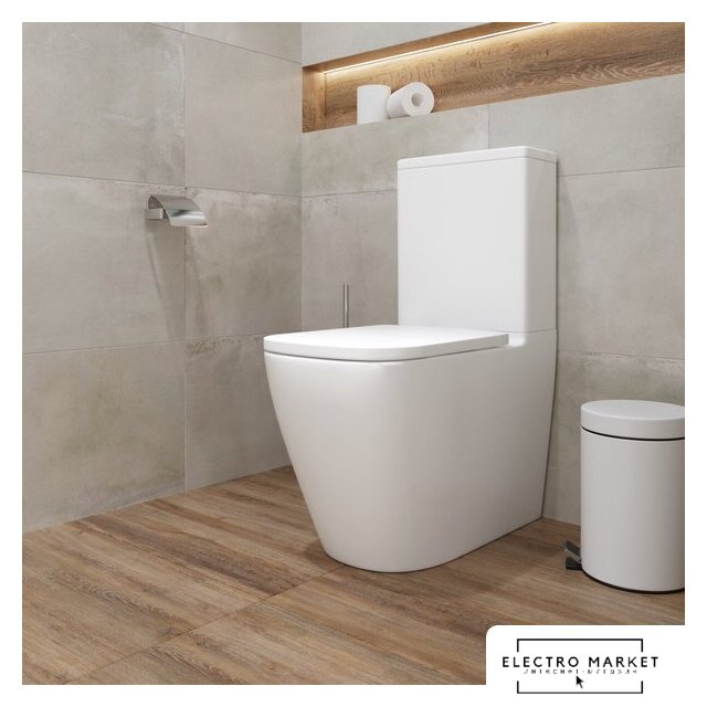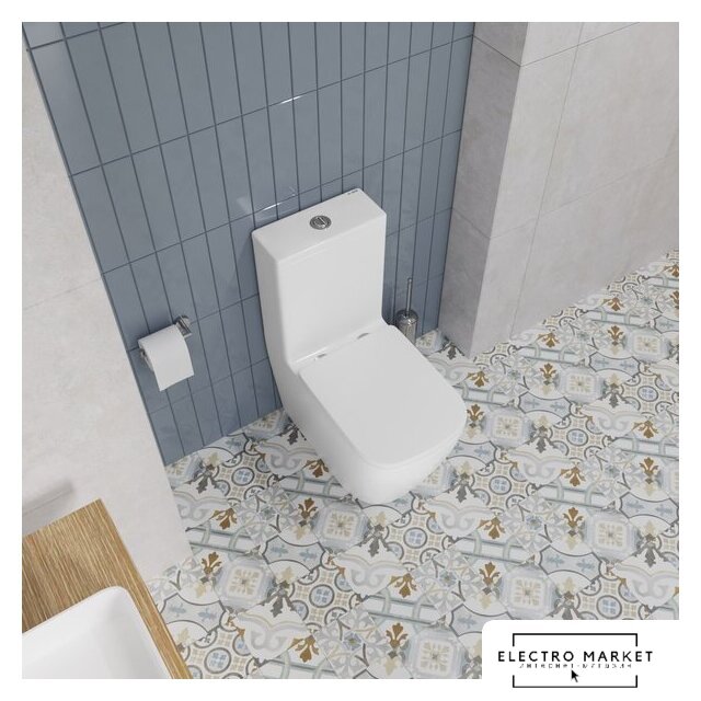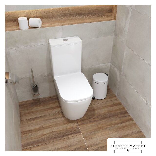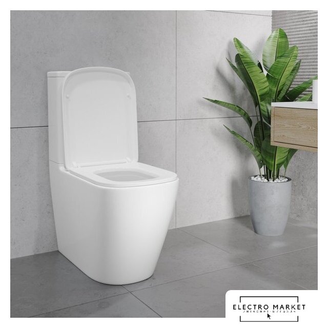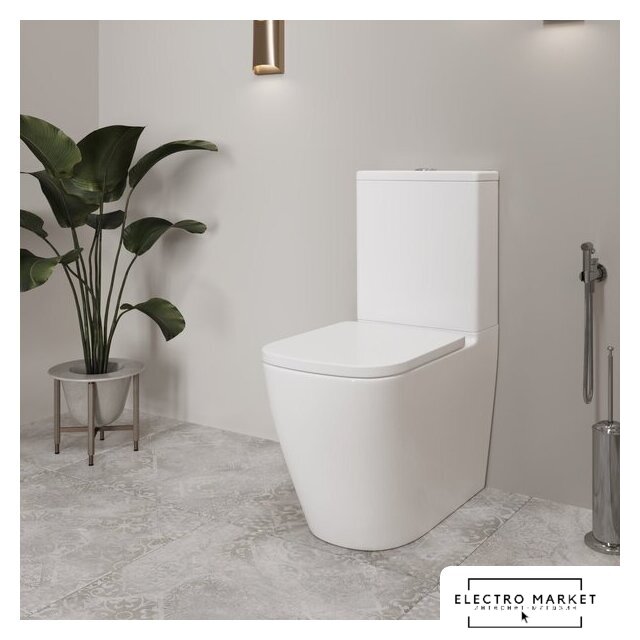 напольный, конструкция: компакт, нижний подвод воды, универсальный выпуск, двухрежимный слив, с сиденьем, безободковый