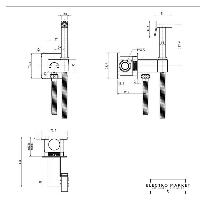| Подвод воды | боковой |