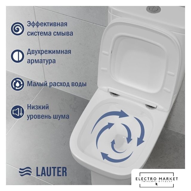 напольный, компакт, нижний подвод воды, универсальный выпуск, двухрежимный слив, с сиденьем