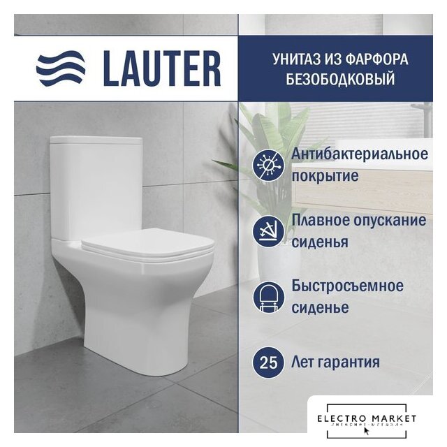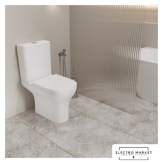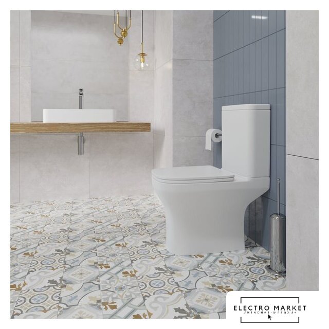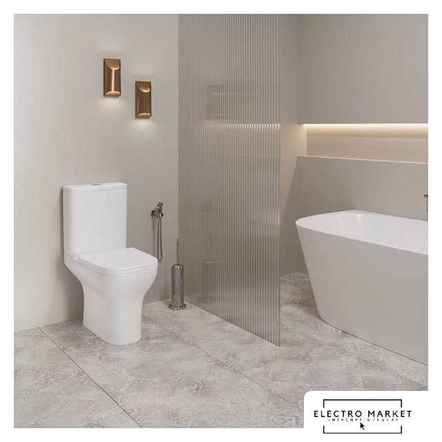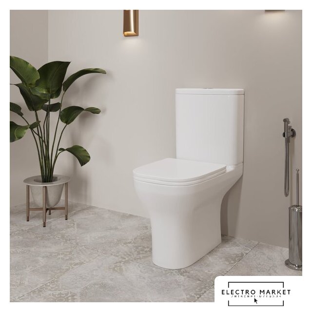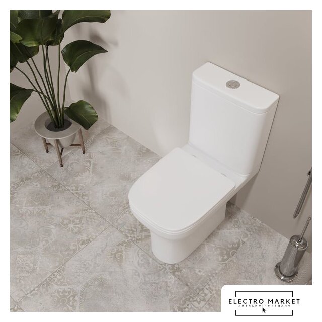 напольный, конструкция: компакт, нижний подвод воды, горизонтальный выпуск, безободковый