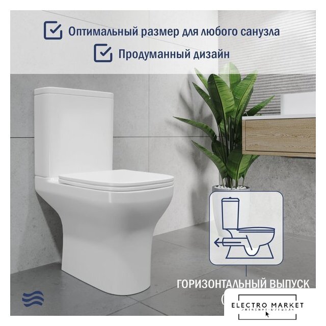 напольный, конструкция: компакт, нижний подвод воды, горизонтальный выпуск