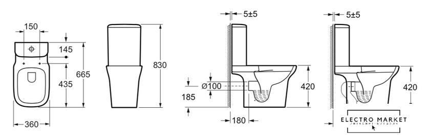 напольный, конструкция: компакт, нижний подвод воды, горизонтальный выпуск