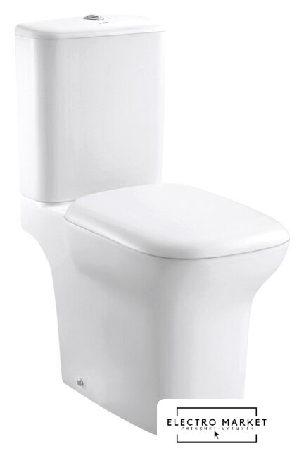 напольный, конструкция: компакт, нижний подвод воды, горизонтальный выпуск, двухрежимный слив, с сиденьем, безободковый